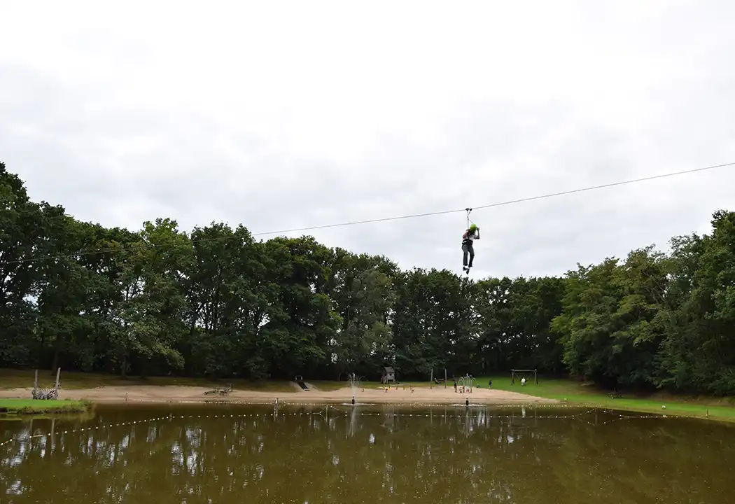 Het klimbos ligt direct naast onze natuurlijke zwemplas. Ideaal als je met een groep komt en niet iedereen zin heeft om te klimmen. Terwijl de avonturiers de hoogte in gaan, kunnen anderen heerlijk ontspannen aan het water, een frisse duik nemen of genieten van alles wat het park nog meer te bieden heeft.